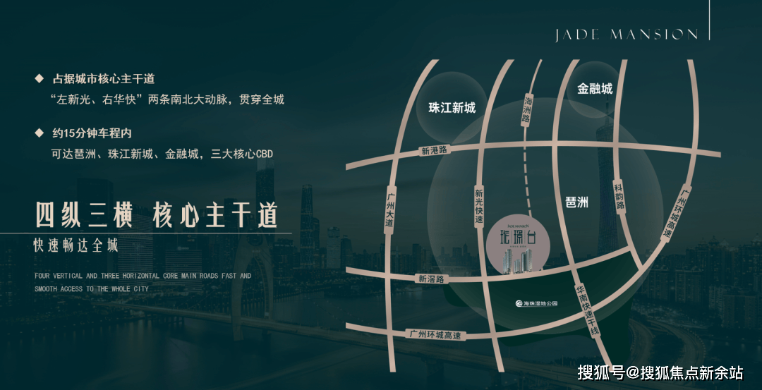 项目占据核心主干道,约15分钟车程内即可到达琶洲、珠江新城、国际金融城三大核心CBD。